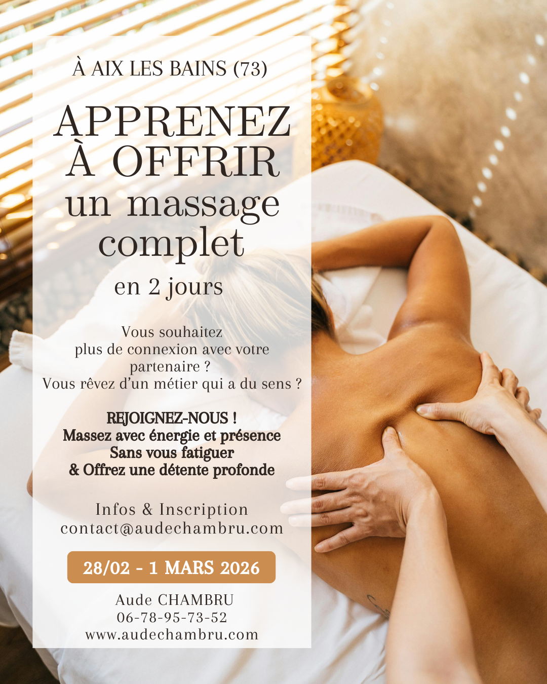 Deux jours pour apprendre à masser, à ancrer, à apaiser — et à renouer avec votre énergie vitale.